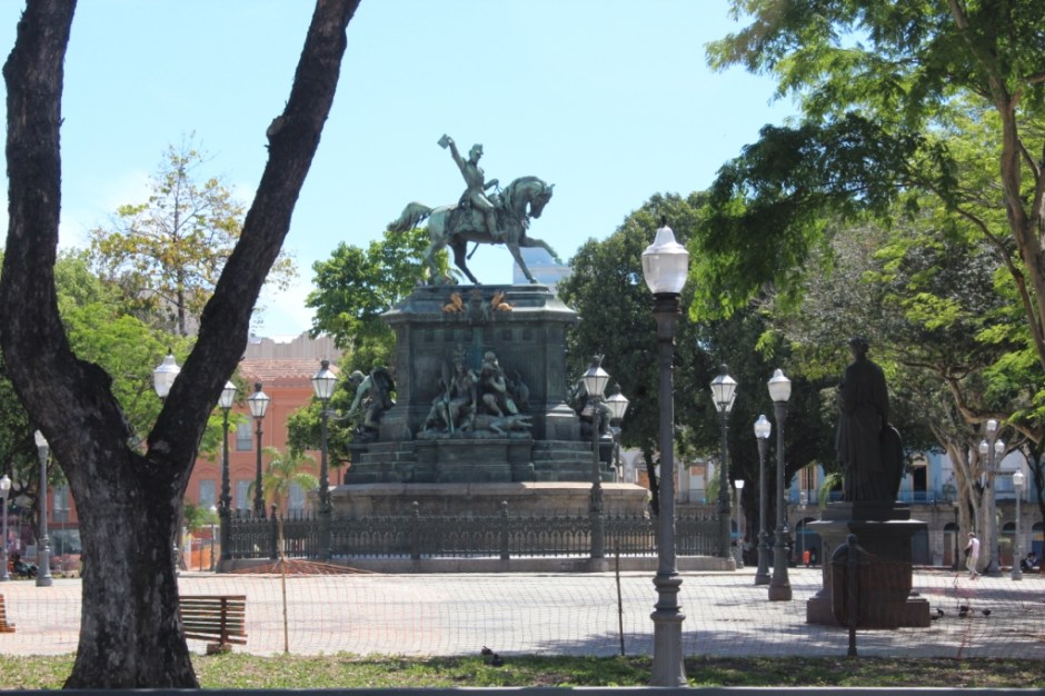 Siga para seu principal monumento, o Monumento Equestre de Dom Pedro I, segurando a Primeira Constituição do Brasil, inaugurada em 1862. Em seu pedestal existem quatro esculturas indígenas que representam os quatro maiores rios brasileiros. Há certa controvérsia sobre os rios representados serem os maiores do Brasil.