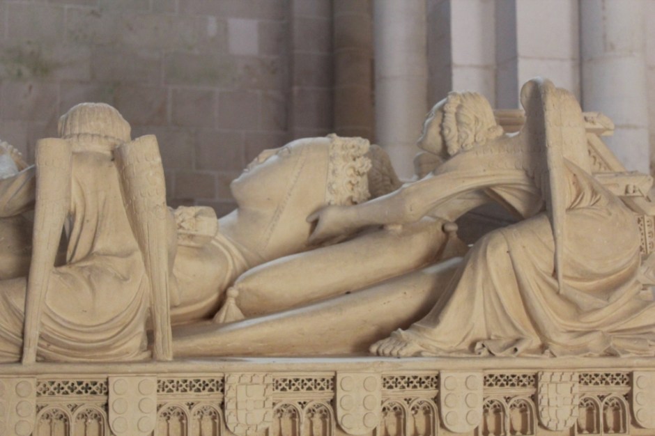 A História por trás do túmulo: Em 1340, Dom Pedro I (o nosso D. Pedro I é o IV, para eles! Vejam como isso foi da época de 1300…) casa-se com a princesa castelhana Dona Constança Manuel. Uma das aias que acompanhava D. Constança era Inês de Castro, por quem D. Pedro se apaixonou. Em 1348-1349, D. Constança morre e então D. Pedro assume mais abertamente o relacionamento com Inês de Castro em terras de Coimbra.