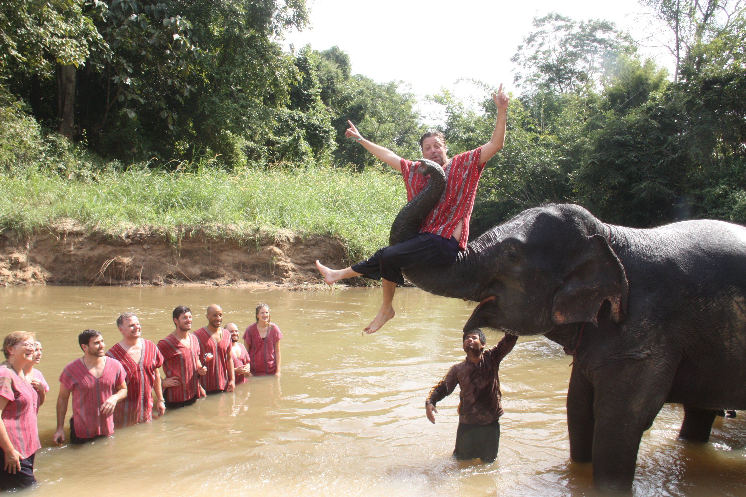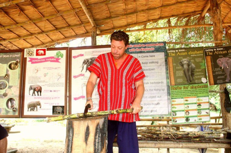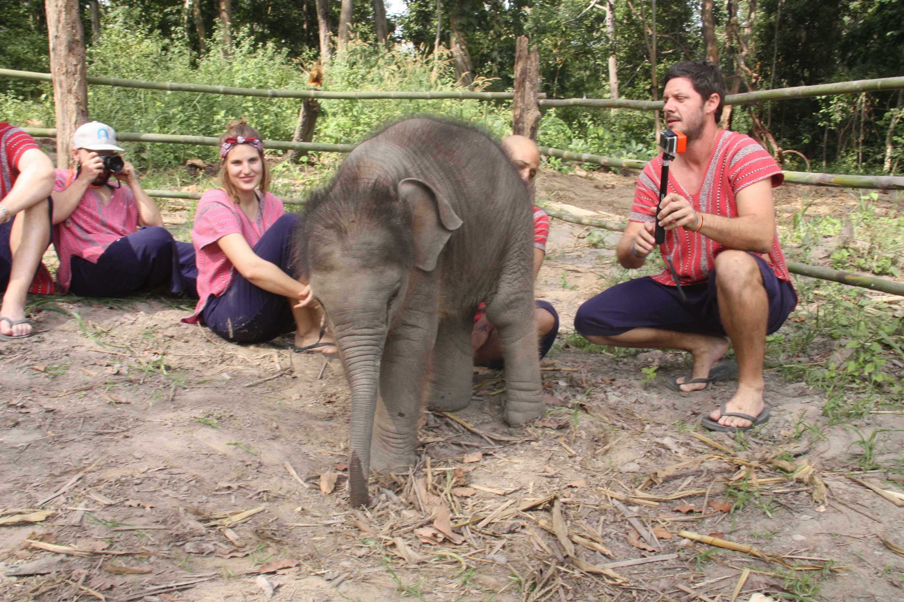 Havia um Grupo de 12 pessoas e, após vestirmos roupas adequadas, o dono do pedaço, Tony, tremendo dum sacana e muito divertido faz um briefing com uma Aula sobre os Elefantes Asiáticos, por exemplo, diz que os Elefantes da Ásia têm uma orelha menor do que os da África, que sua tromba tem apenas um “dedo”, enquanto os africanos tem dois dedos.
