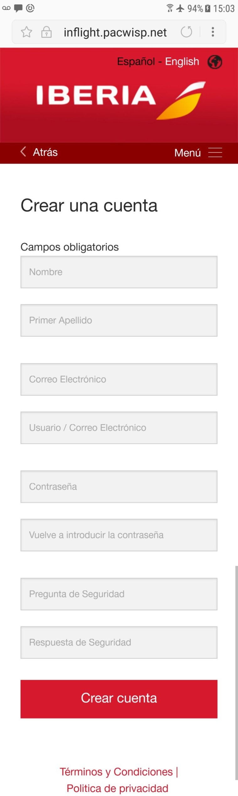 1 – Entramos no Wifi da IBERIA;