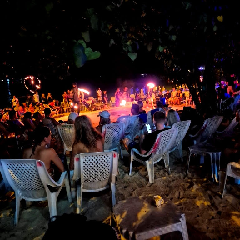 Na Praia Loh Dalum Beach, no lado direito tem uns bares com apresentação de Malabarismo com Fogo, música alta e muita animação. Vale a pena dar um pulo lá.