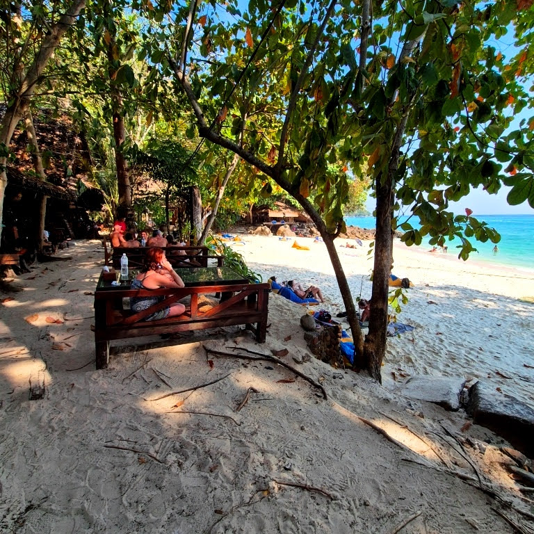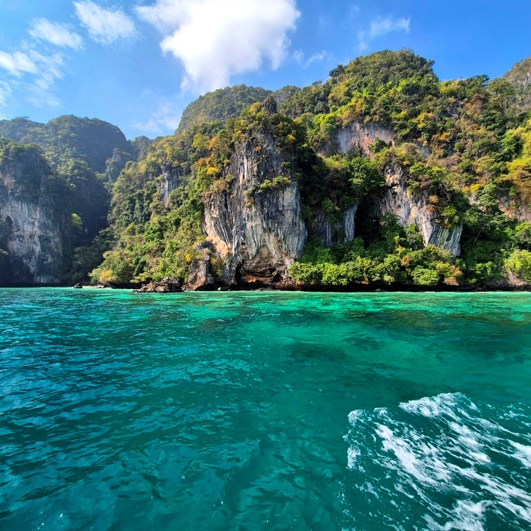 A Estrela de Phi Phi, a Praia mais famosa do mundo, onde foi filmado “A Praia” com di Caprio. Paga-se uma taxa para entrar e é repleta de turistas, se possível a visitaremos fora do horário de pico. Há vinte anos atrás era um Paraíso Escondido, mas, hoje, vive no turismo de massa.